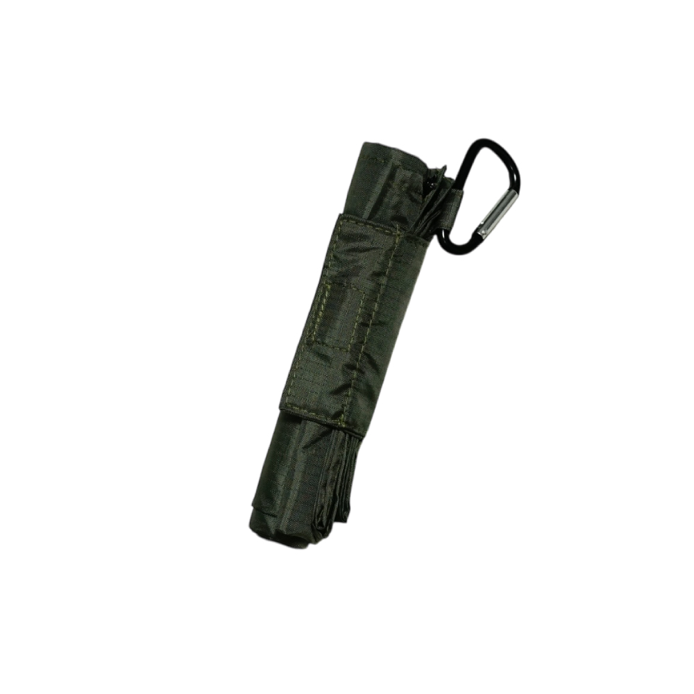 テープ付きでコンパクトに畳め、カラビナ付となり
