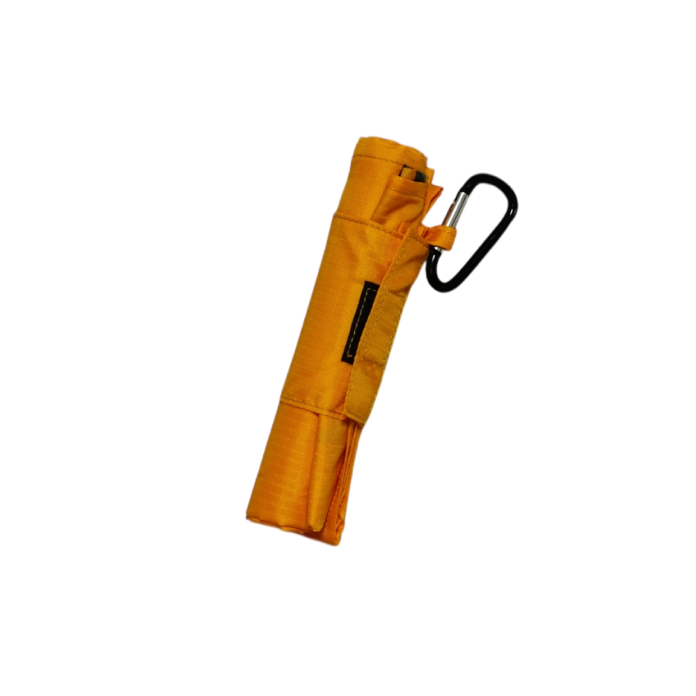 テープ付きでコンパクトに畳め、カラビナ付となり